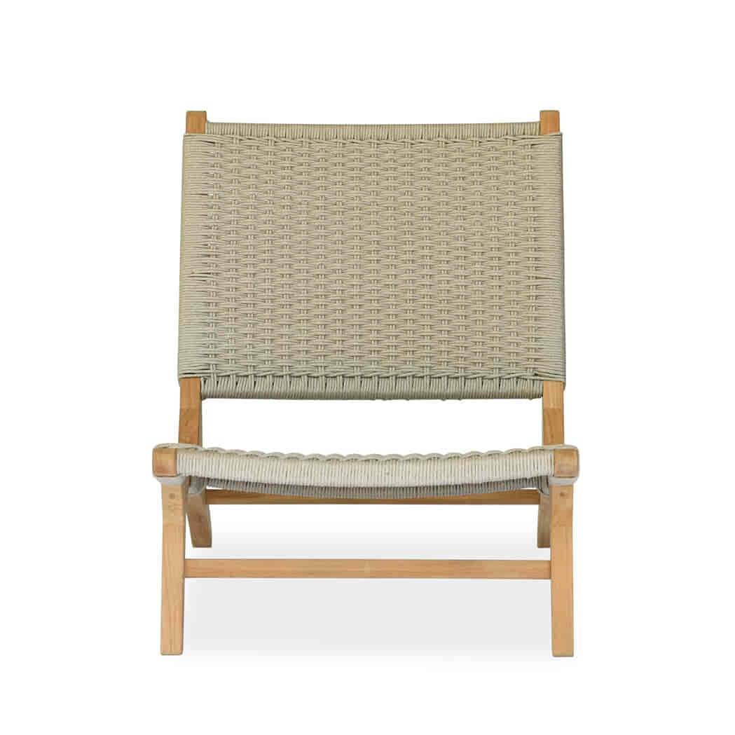 En loungestol i sin reneste form. Fremstillet i førsteklasses teaktræ med en varm, stoflig overflade og et udtryk, der passer ind – uanset om den står på en træterrasse, i et orangeri eller under et åbent tag af himmel.
