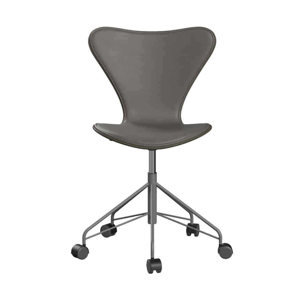 3117 Drejestol uden armlæn – Arne Jacobsens ikoniske design er en funktionel fortolkning af den verdensberømte Syverstol fra 1955. Denne model kombinerer den organiske, skulpturelle form, som Arne Jacobsen er kendt for, med en praktisk drejefod, der giver maksimal fleksibilitet i hverdagen.