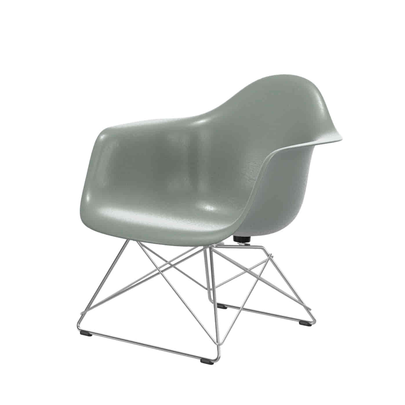Eames Fiberglass LAR er en markant fortolkning af den ikoniske loungestol designet af Charles and Ray Eames. I denne version er det særligt materialet, der træder i karakter: sædeskallen er udført i fiberglas og kendetegnes af sin levende, let uregelmæssige overflade, hvor de synlige fibre skaber dybde og struktur. Resultatet er en stol med et næsten natur materiale-lignende udtryk, som giver hver enkelt model sit eget unikke præg.