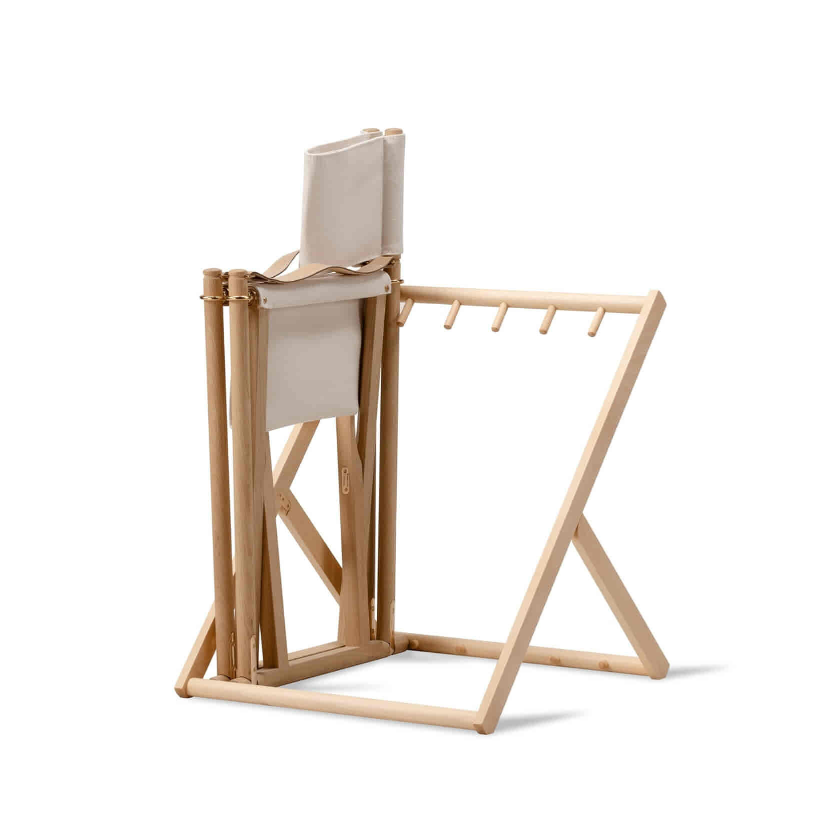 Praktisk og elegant stander designet til opbevaring af op til seks Mogens Koch foldestole. Standeren holder stolene sikkert samlet og gør dem nemme at transportere og opbevare – ideel til både private hjem, kontorer, kirker og konferencemiljøer. En funktionel løsning, der understøtter stolens fleksible design og sikrer en stilren præsentation, når stolene ikke er i brug.