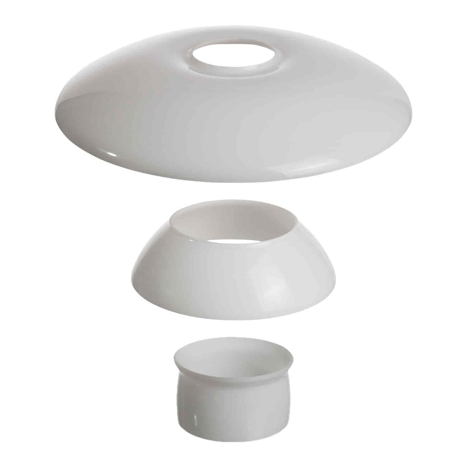 Disse originale reserveskærme er designet til PH 3½-3 og sikrer, at lampens ikoniske udtryk og blændfri lys bevares. Skærmene er fremstillet i mundblæst, hvidt opalglas i tre lag, som leder størstedelen af lyset nedad og samtidig spreder et blødt og behageligt lys i rummet. Den matte underside og den blanke overside bidrager til en jævn lysfordeling og reducerer blænding – præcis som Poul Henningsen oprindeligt tilsigtede.